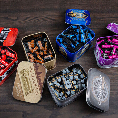 • Fin detaljerade plasttåg och stationer, lagrade i unika tennlådor